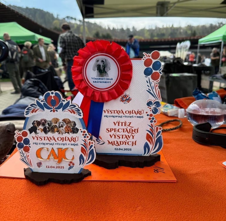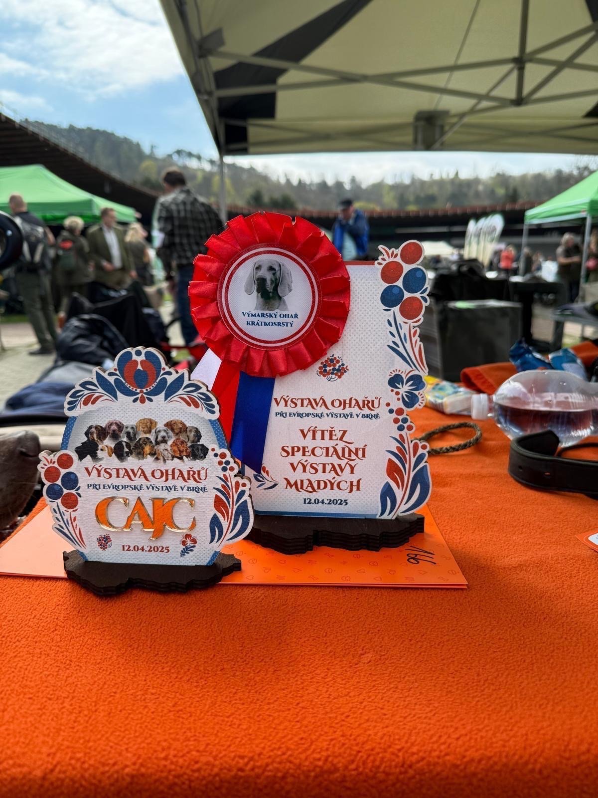 Velký úspěch zaznamenal náš odchovanec z vrhu D (Pepper a Dash) na Evropské výstavy psů, kde v silné konkurenci mladých obsadil 2. místo. Máme obrovskou radost, že se Moonymu takto výstavně daří. V sobotu vybojoval na Speciální výstavě ohařů při Evropské výstavě titul CAJC a zahájil JuniorŠampiona ČR.