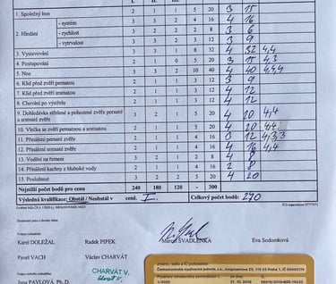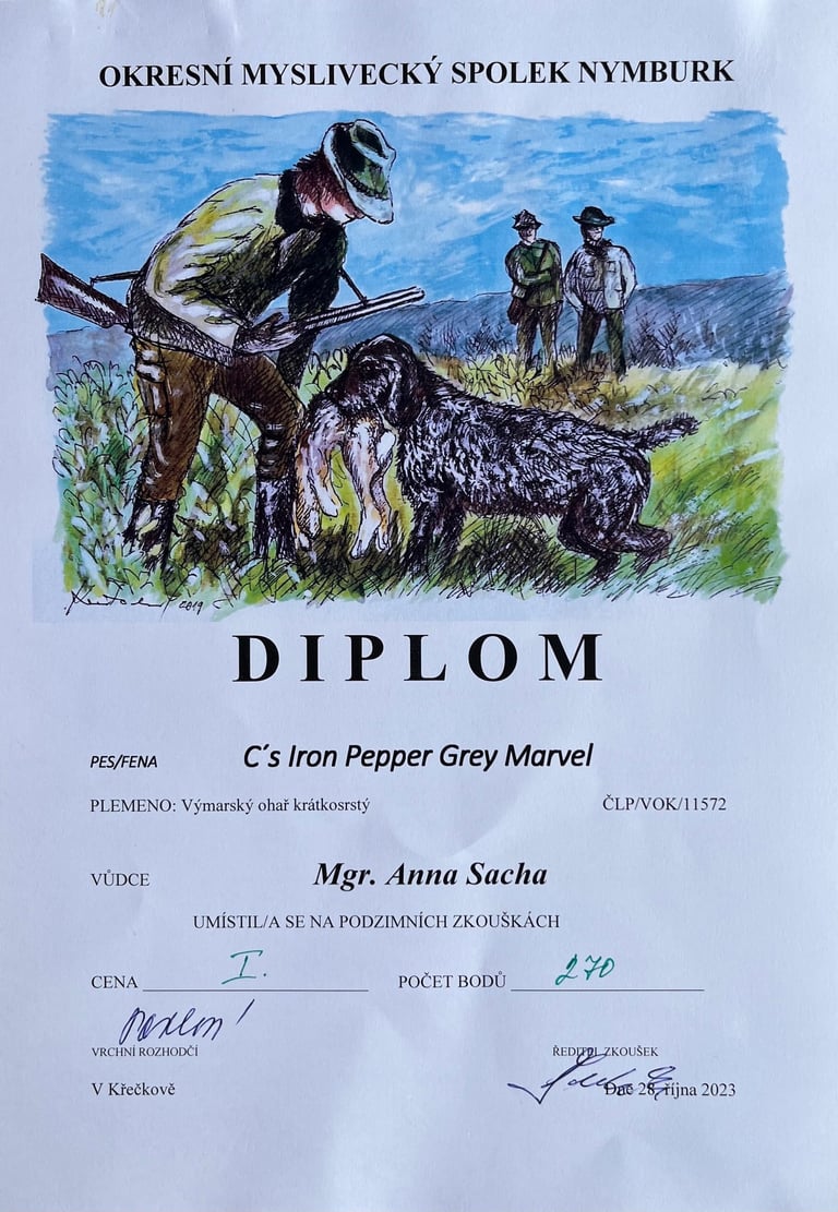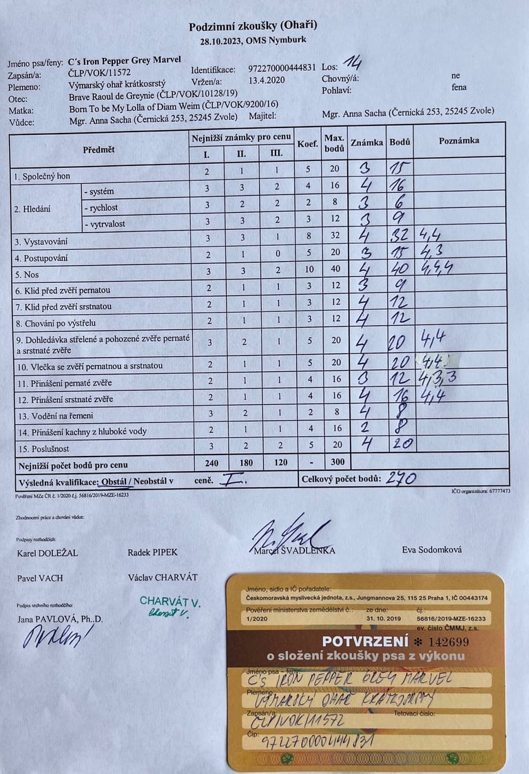 Pepper absolvovala poslední podmínku chovnosti a splnila PZ v I. ceně s 270 body v honitbě Křečkov OMS Nymburk