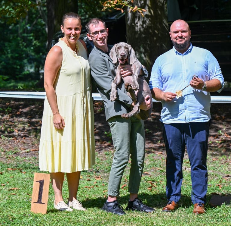 Sdružená výstava Zákupy 10.8.2024 Quill, štěňátko z vrhu D, které v únoru 2025 odlétá za svými majiteli do Japonska absolvovalo svou 1. výstavu a vedl si skvěle. Odnesl si ocenění ve třídě štěňat Velmi nadějná 1 a v závěrečných soutěžích získal ocenění Best in show baby 2 Pepper na stejné výstavě ve třídě šampionů V1 CAC a zahájila tak Grandšampiona ČR