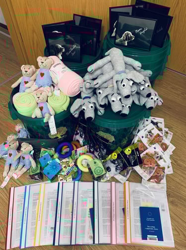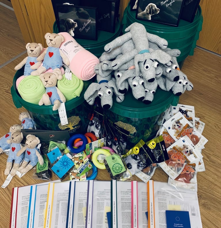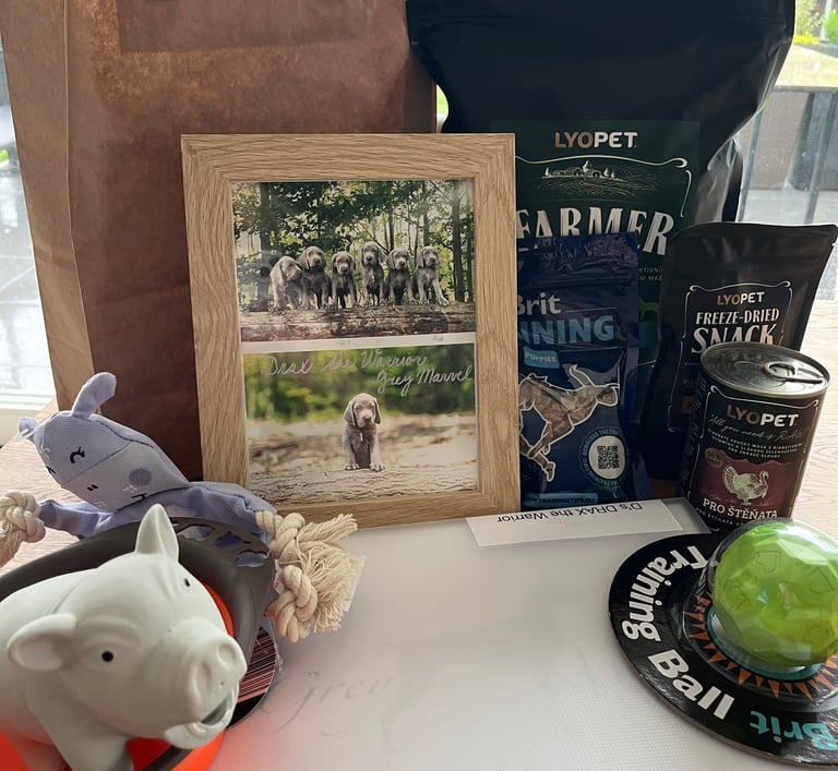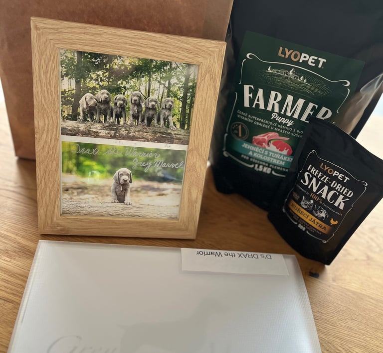 Ukázka balíčků pro štěňátka z předchozích vrhů