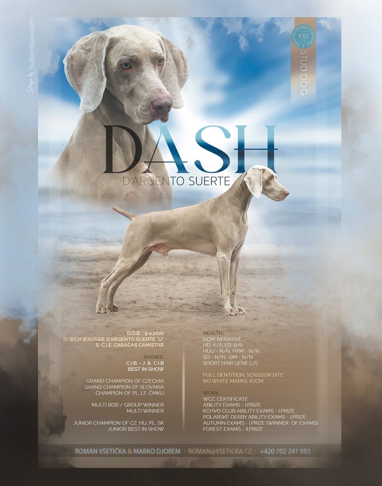 Otec: Dash D'Argento Suerte (Nejlepší výmarský ohař roku 2024)